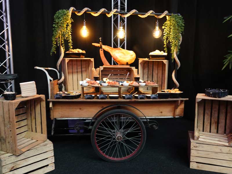 Vanaf 50 personen is het mogelijk om onze borrelbakfiets te bestellen. Een sfeervolle vintage bakfiets vol met heerlijke hapjes, speciaal voor jouw team of gasten.